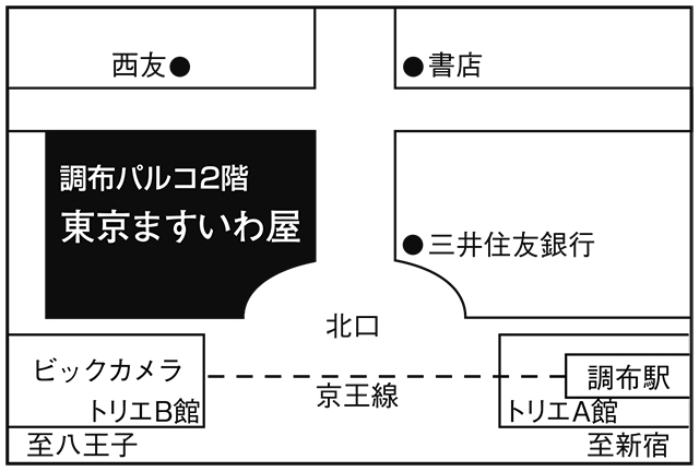 首都圏東京都調布パルコ店masuiwaya_chofuGoogle Maps 本社所在地〒182-0026 東京都調布市小島町1-38-1調布パルコ2階 電話番号042-489-5186 営業時間10:00AM~8:30PM アクセス電車京王線調布駅 徒歩1分 Webサイト調布パルコ店スタッフBLOG 東北弘前店 甲信越・北陸ながの東急店 金沢エムザ店 首都圏銀座店 京王新宿店 調布パルコ店 東急百貨店吉祥寺店 玉川高島屋店 小田急町田店 たまプラーザ店 横浜ポルタ店 横須賀店 ODAKYU 湘南 GATE店 まるひろ川越店 グランエミオ所沢店 水戸店 まるひろ飯能店 FKD宇都宮店 高崎店 セレオ八王子店 中部名鉄名古屋店 四日市店 近畿あべのハルカス店 上本町店 守口店 奈良店 橿原店 和歌山店 四国高松店 九州熊本店 店舗一覧を見る